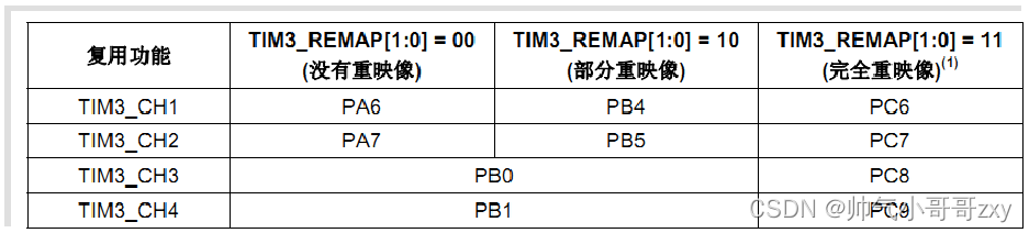 八。STM32 定时器3输出通道引脚(注意:Datasheet中表格会有详细说明)