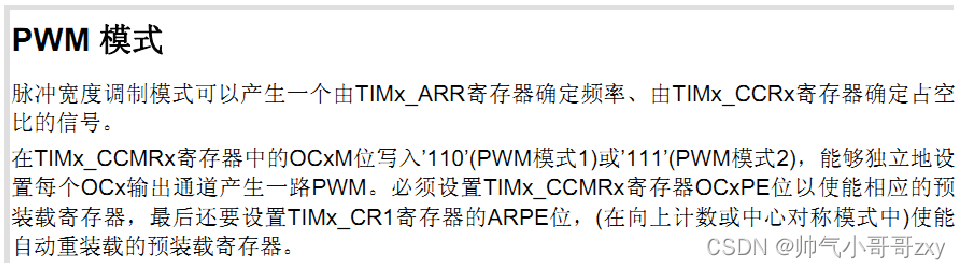 对于PWM方式下,用于设置PWM模式1【110】或者PWM模式2【111】