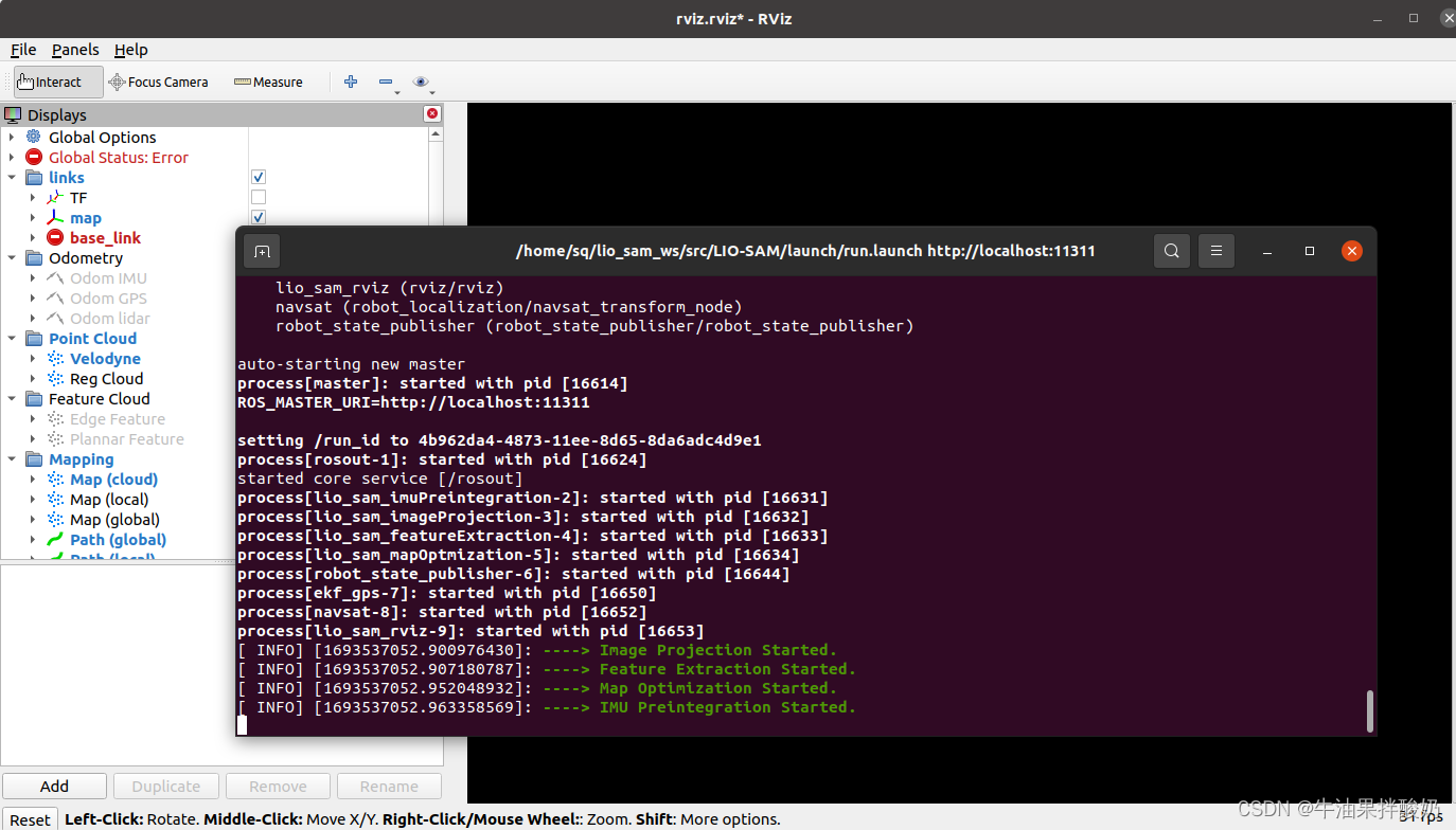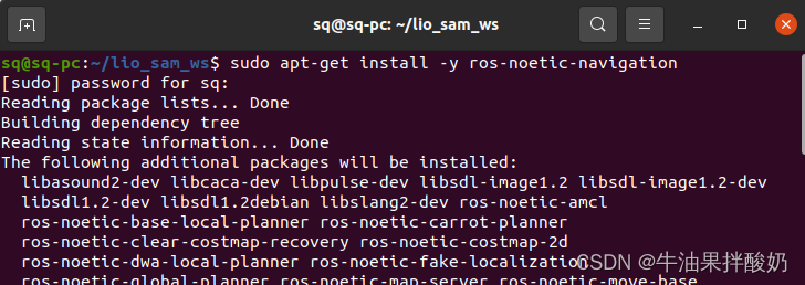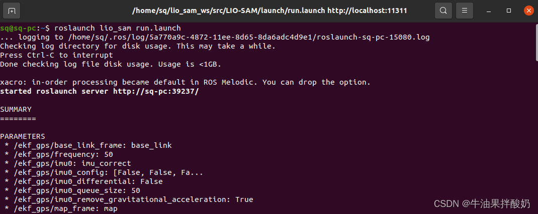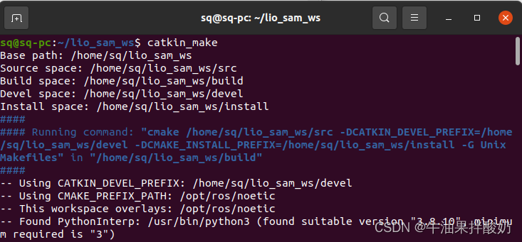 本文是在已经安装好ROS环境中进行的,不需要提前安装其他库,只需按照步骤进行操作,便能完成LIO-SAM的编译和运行,并且每一步都有我执行时的截图进行参考。