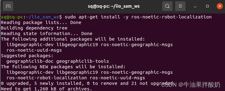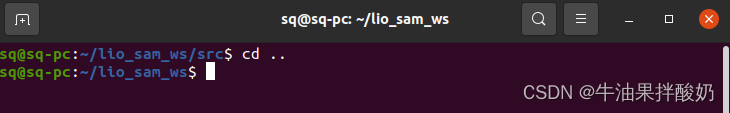 在下图中,我的终端已经不在lio_sam_ws目录下了,无论在哪都不影响这里的操作的,您只管放心在您终端里执行上面命令就好。