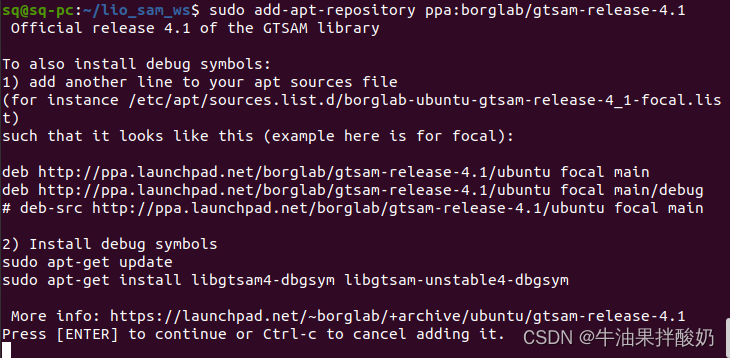 sudo add-apt-repository ppa:borglab/gtsam-release-4.1