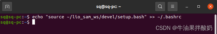 echo "source ~/lio_sam_ws/devel/setup.bash" >> ~/.bashrc