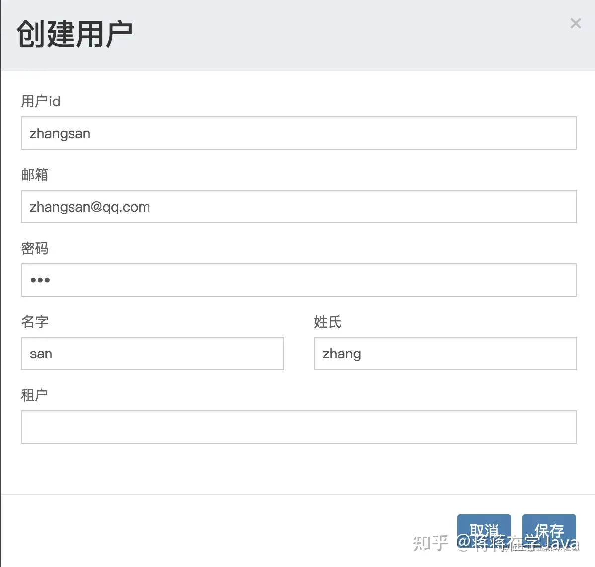 接下来点击左边的创建用户按钮,我们可以创建新的用户出来:
