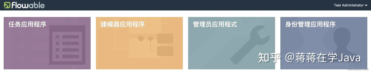 - Flowable Admin: 管理应用。让具有管理员权限的用户可以查询 BPMN、DMN、Form 及 Content 引擎,并提供了许多选项用于修改流程实例、任务、作业等。管理应用通过 REST API 连接至引擎,并与 Flowable Task 应用及 Flowable REST 应用一同部署。