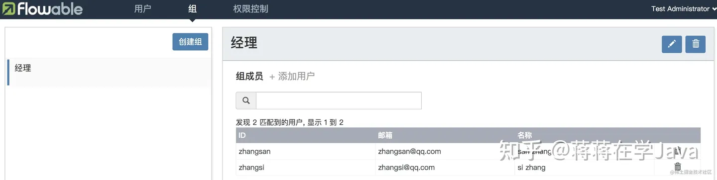 假设 zhangsan 和 zhangsi 两个人是经理,最终添加结果如下: