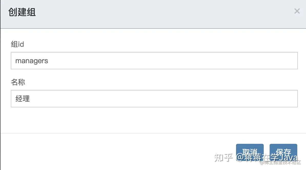 接下来点击上面的组,我们可以创建用户组,这个用户组相当于我们在 vhr 中所说的角色,给用户分组,相当于给用户分配一个角色。