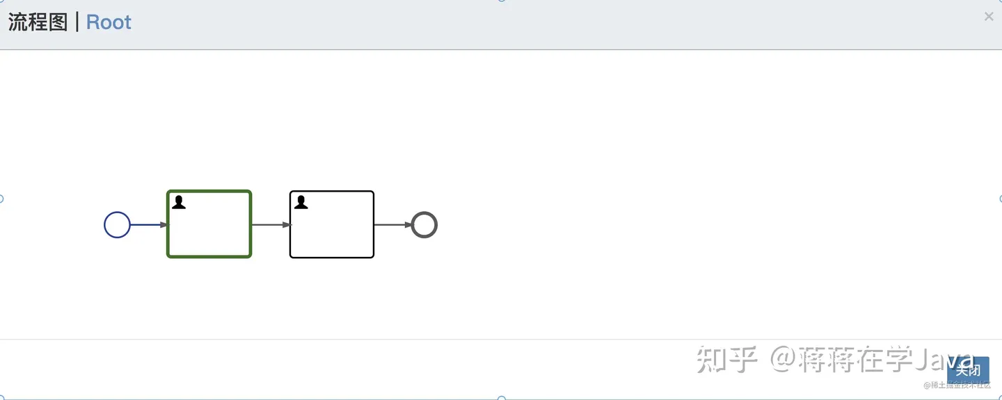 接下来我绘制一个简单的流程,如下图(一个流程启动之后,经过两个 UserTask 然后就结束了):