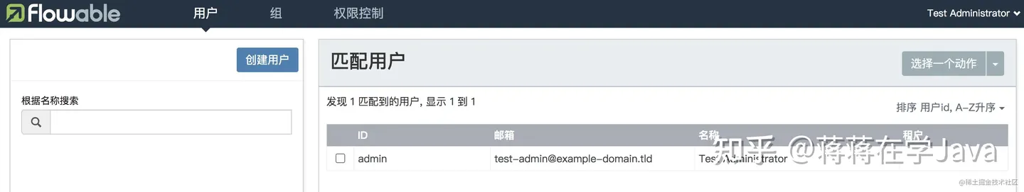 可以看到,默认只有一个 admin 用户,也就是我们刚刚登录时候的用户。