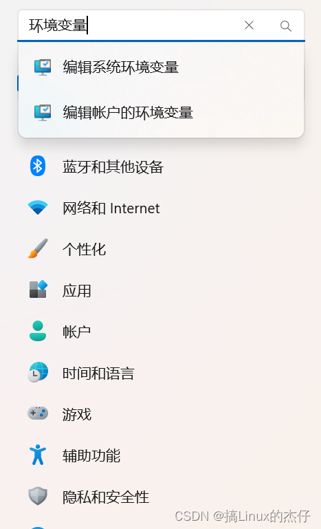 2.搜索环境变量(这里我们选择第一个编辑系统环境变量)