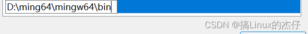 5.新建我们下载的文件路径D:\ming64\mingw64\bin