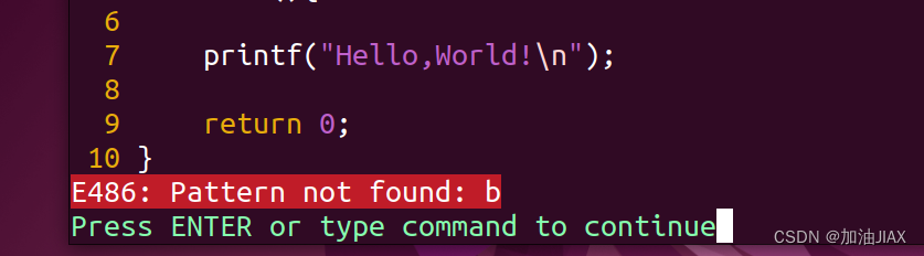 若文件中没有该字符串或字符,终端底部就会显示如下提示:(输入 /b ,这段代码中没有字符b)