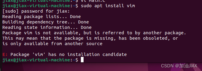 若出现如上图提示信息,先执行 sudo apt-get upgate ,再执行 sudo apt-get install vim。
