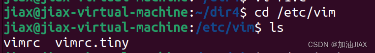 2.在进入etc目录后,通过ls命令可以看到有vim目录,再进入vim目录。