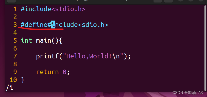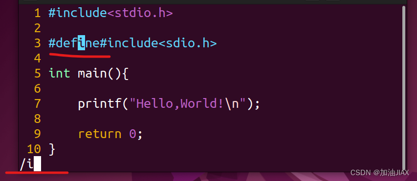 此时光标处于第三行第一个字符位置,点击 / ,再输入 i ,系统将光标定位到第三行的第一个 i 的位置,而不是第一行的第一个 i 的位置。