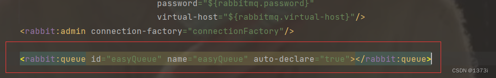 <rabbit:queue id="tQueue1" name="tQueue1" auto-declare="true"></rabbit:queue>