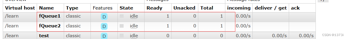 此处由于创建的交换机类型是fanout广播类型不需要去配置路由,如果创建的direct交换机不止需要配置队列名属性,还需要配置路由属性,如果是topic交换机则需要配置通配符