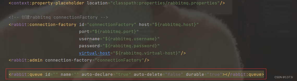 <rabbit:queue id="" name="" auto-declare="true" auto-delete="false" durable="true"></rabbit:queue>id 表示bean的名称