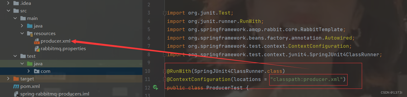 @ContextConfiguration(locations = "classpath:producer.xml")