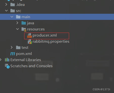 在生产者项目的resources目录下创建xml文件,该文件用于注入bean对象以及后续创建队列、交换机等