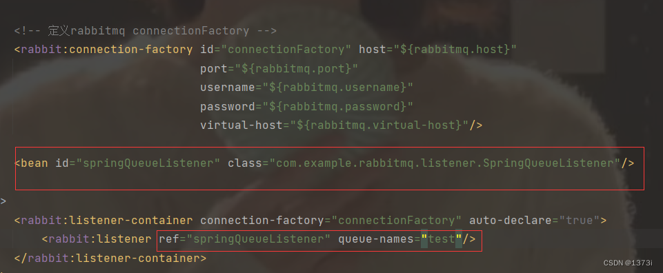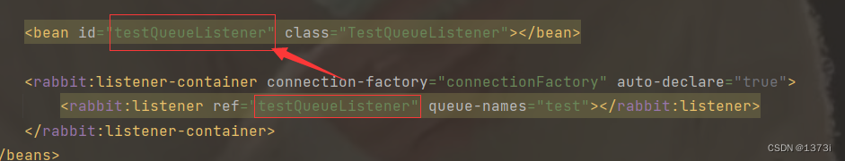 <rabbit:listener ref="springQueueListener1" queue-names="test"></rabbit:listener>