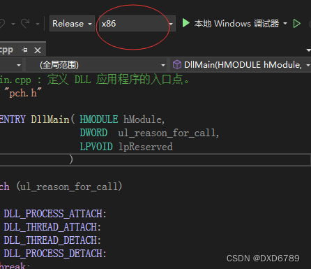 这个项目可以编译出x64和Win32(x86)版本的DLL。Visual Studio自动生成的项目也是奇葩,在主界面上Win32程序叫做x86: