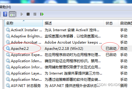 安装的时候,就按照缺省的设置安装,安装完会自动启动apache2.2服务,系统托盘区也会多一个apache的图标: