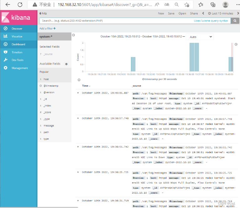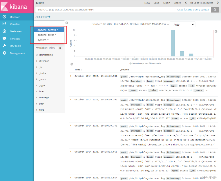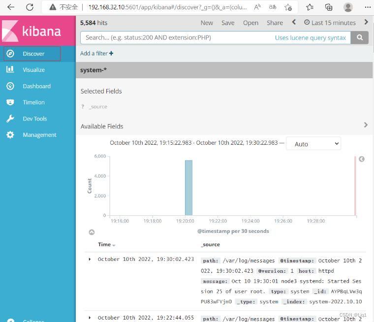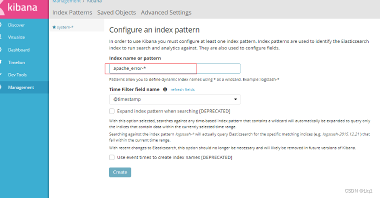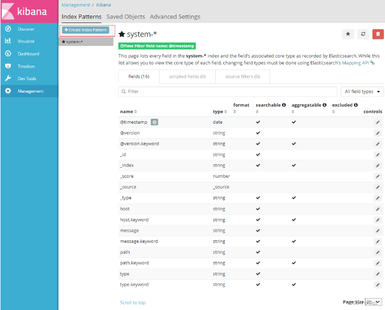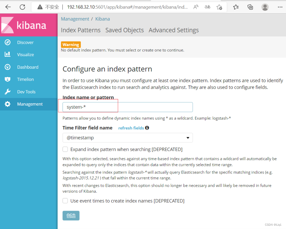 首次登录创建一个索引 名字:system-* ##这是对接系统日志文件
