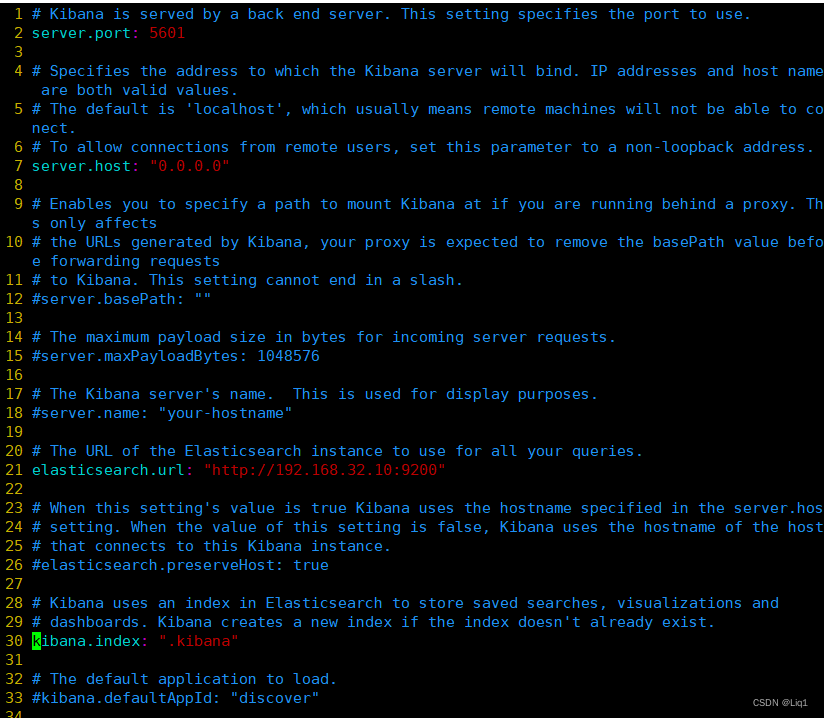 30/ kibana.index: “.kibana” ####在elasticsearch中添加.kibana索引