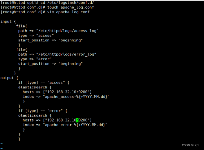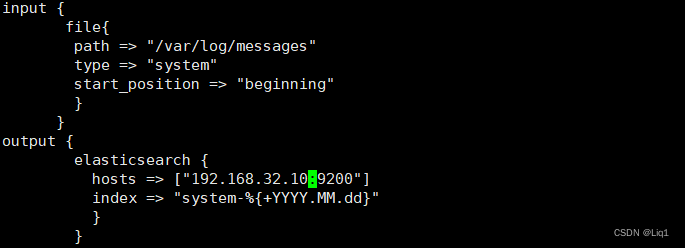 hosts => [“192.168.32.10:9200”] #指定elasticsearch服务器的地址和端