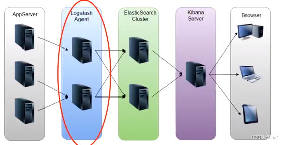 【APPServer集群】→→【logstash Agent 采集器】→→【ElasticSearch Cluster】→→【Kibana Server】→→【Browser】