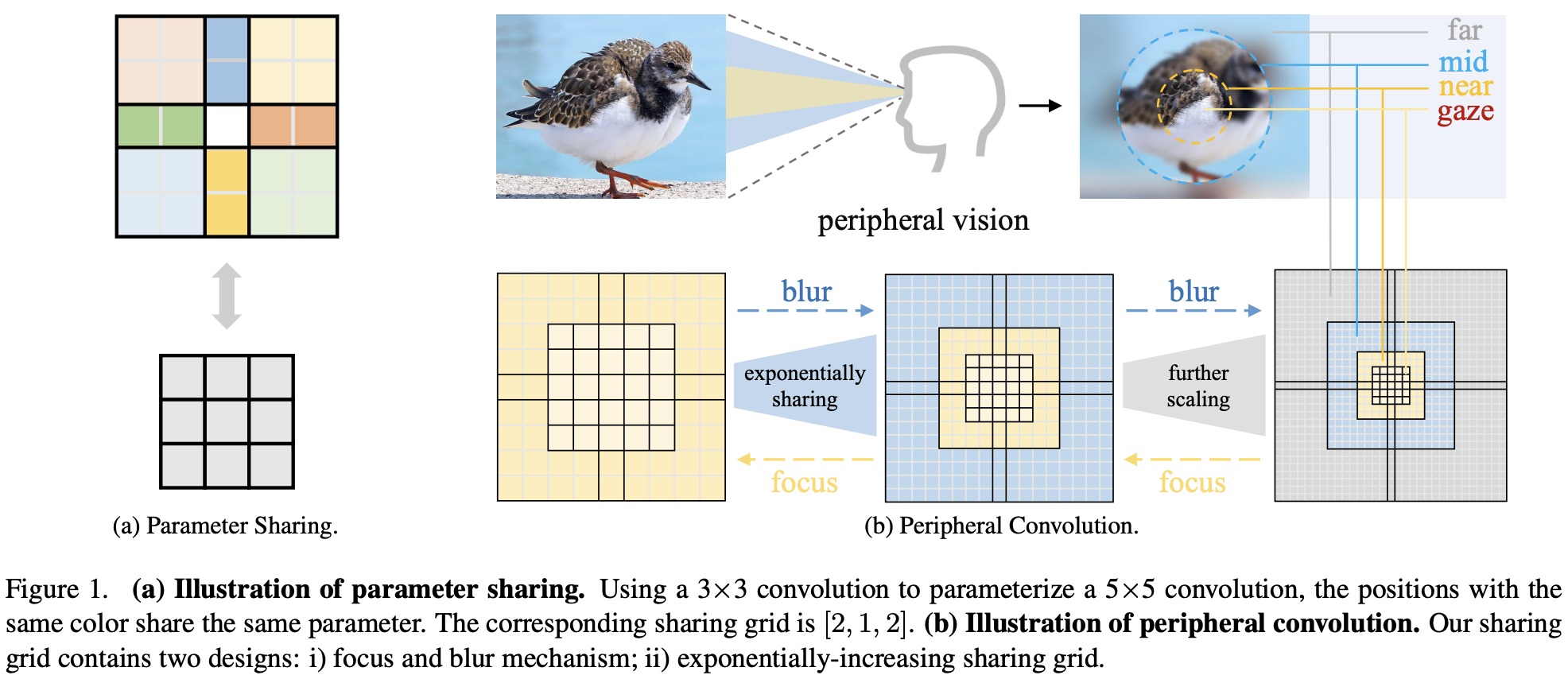 类似于人类的周边视觉,我们的周边卷积的共享网格主要由两个核心设计组成: