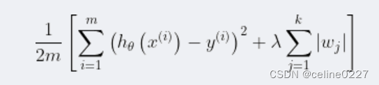 Lasso回归是在损失函数后,加L1正则化,如下所示: