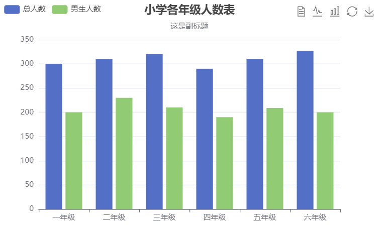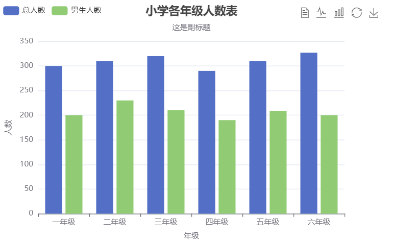 现在需要你将小学各年级的人数以图表形式展示,数据如下: