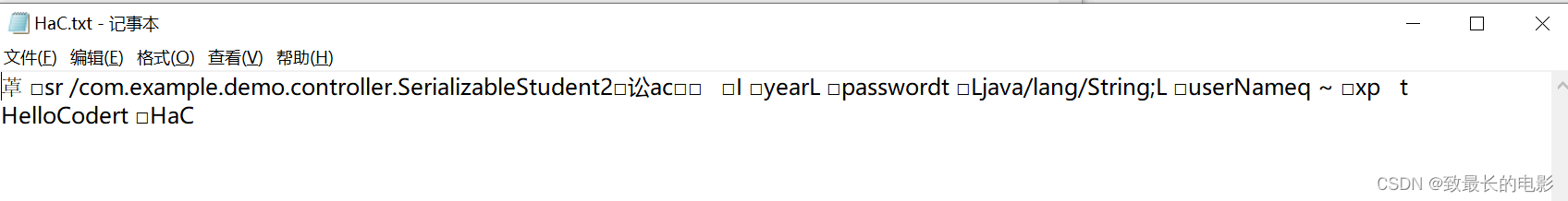 其实这个例子就是序列化和反序列化的一个小过程,JVM 通过序列化把对象写到文件,再通过反序列化从文件中读取数据,把数据转成一个对象。