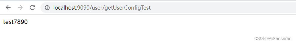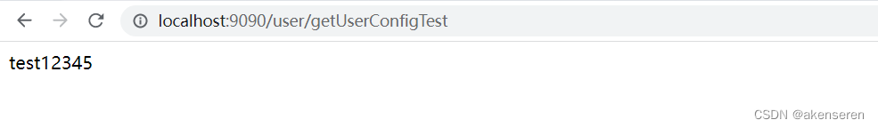 直接浏览器访问网址 http://localhost:9090/user/getUserConfigTest ,成功返回我们新改的配置。