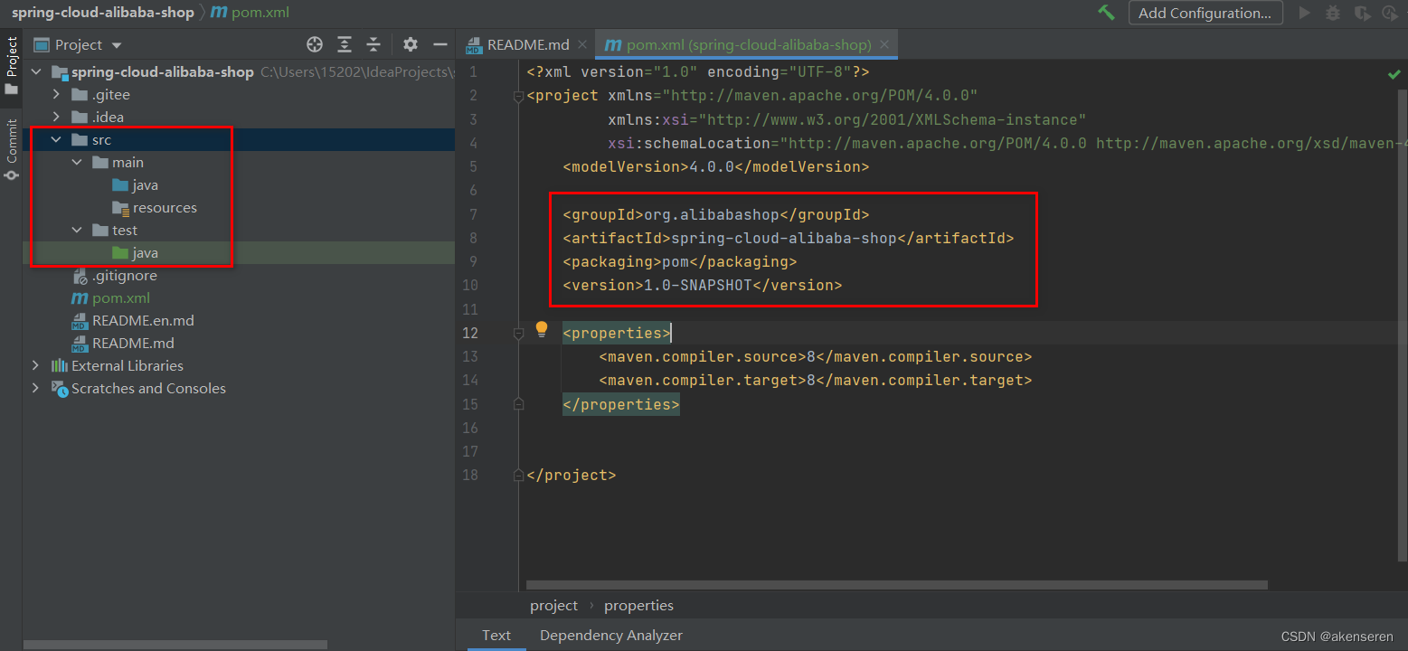 给项目起个名字就叫做’spring-cloud-alibaba-shop’ ,并删除掉src目录(父目录不需要)