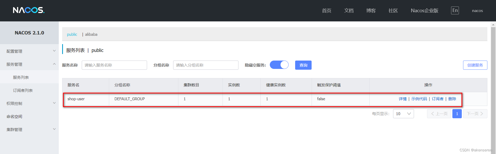 nacos:注册中心(服务注册与发现)、配置中心(动态配置管理)