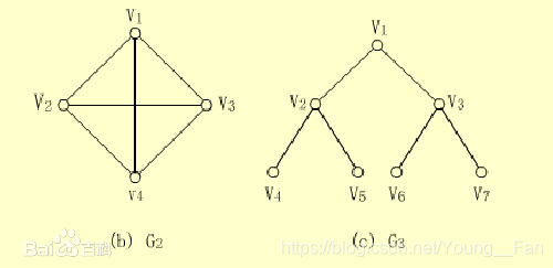 【例】下面(b)图中的G2和(c)图中的G3均是无向图,它们的顶点集和边集分别为: