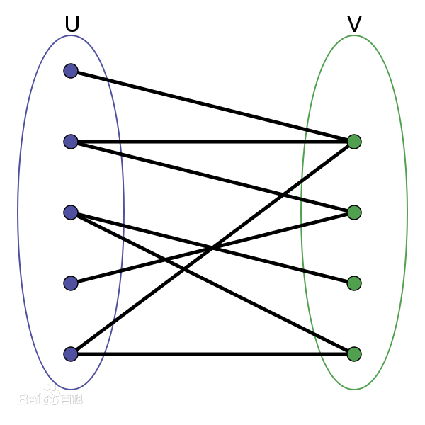 给定一个二分图G,在G的一个子图M中,M的边集{E}中的任意两条边都不依附于同一个顶点,则称M是一个匹配。