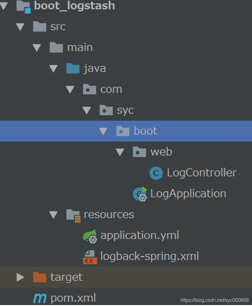 新建一个logback-spring.xml文件,配置logback日志信息,注意这里配置的destination属性,输出的要和logstash配置的对应上,不然收集不上,内容如下: