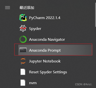 第1步:打开Anaconda的命令窗口,即Anaconda Prompt