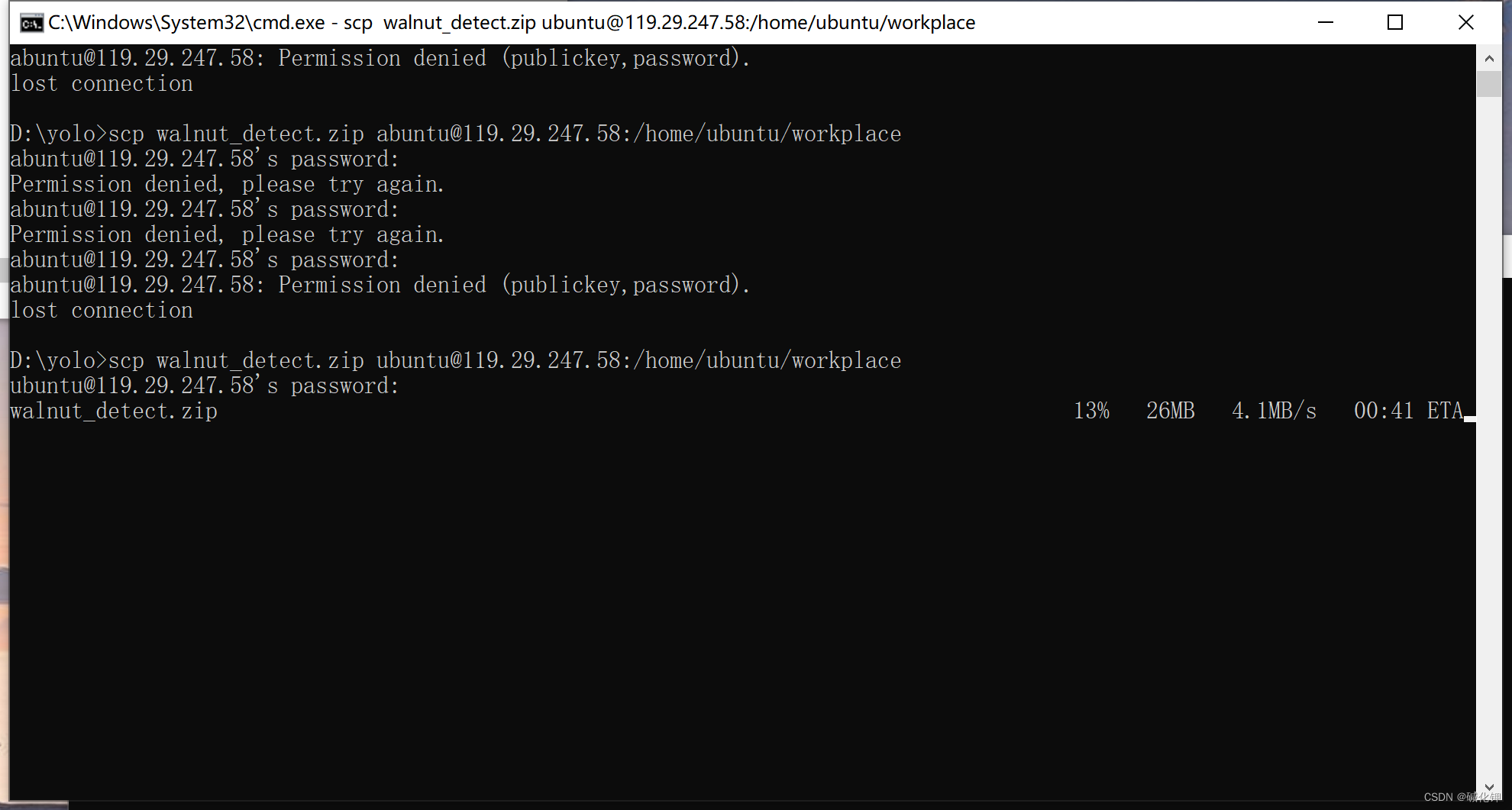 使用scp xxx.zip 用户名@ip(公):上传地址