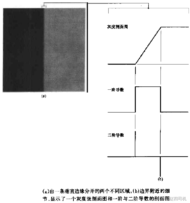 - 一阶导数可以用于检测图像中的一个点是否是边缘点(判断一个点是否在斜坡上);