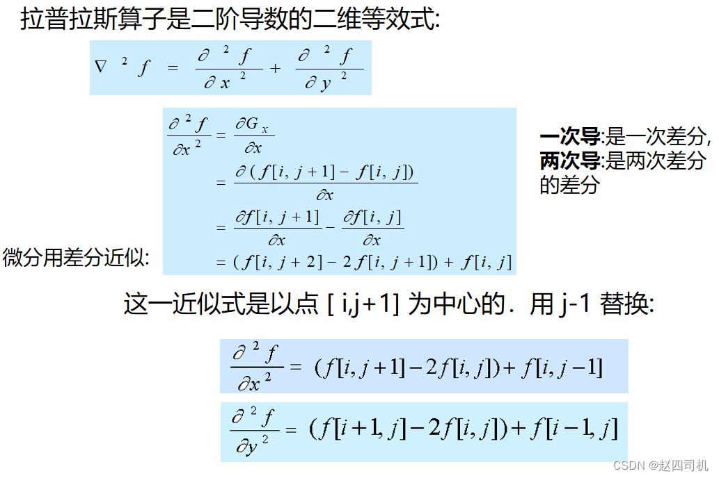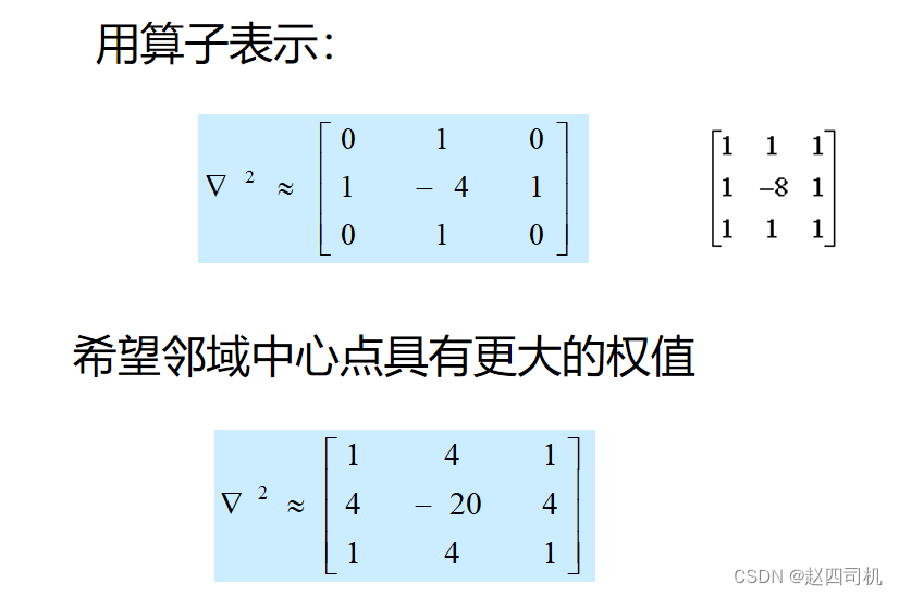 - 二阶微分关心的是图像灰度的突变而不强调灰度缓慢变化的区域,对边缘的定位能力更强。