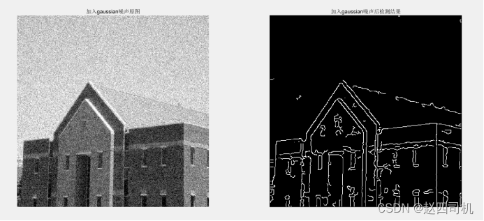 图3.5-2 Matlab自带canny函数检测加入高斯噪声图像结果