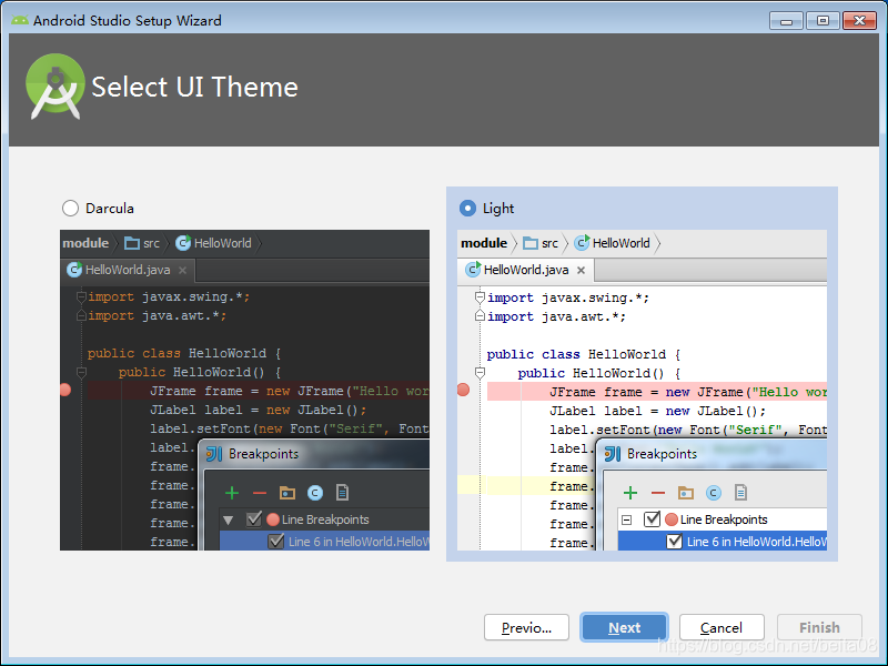 17、依据个人喜好选择环境UI主题,选择后下一步即可: