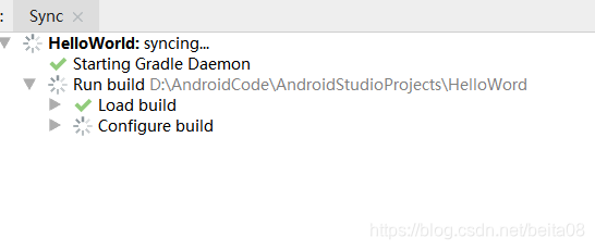 第一个Android Studio项目创建完成后,如果缺少相关资源还会继续进行下载,等待下载完成,然后将项目运行发布到终端上,则至此Android Studio开发环境已经完完全全的安装配置好了。