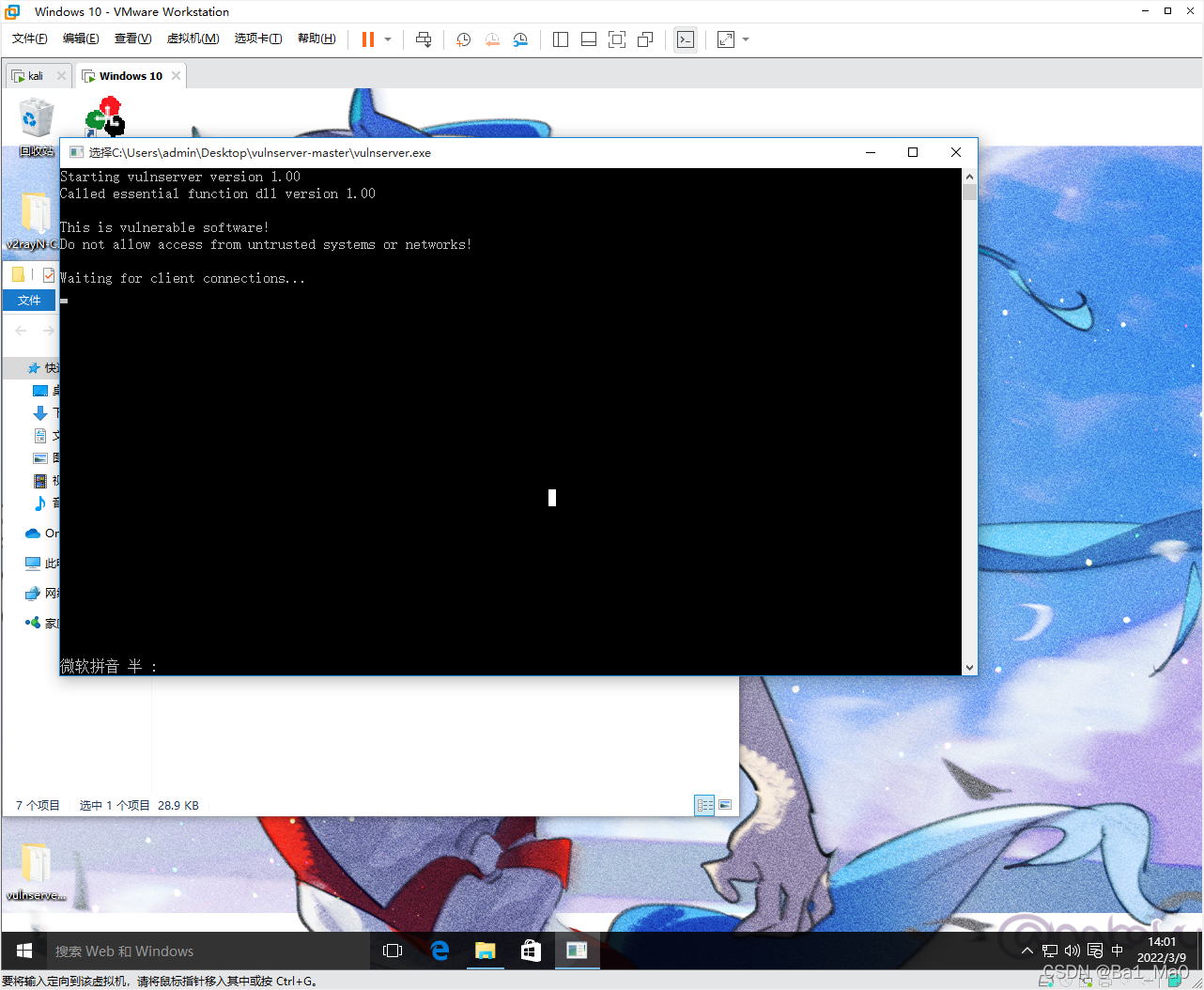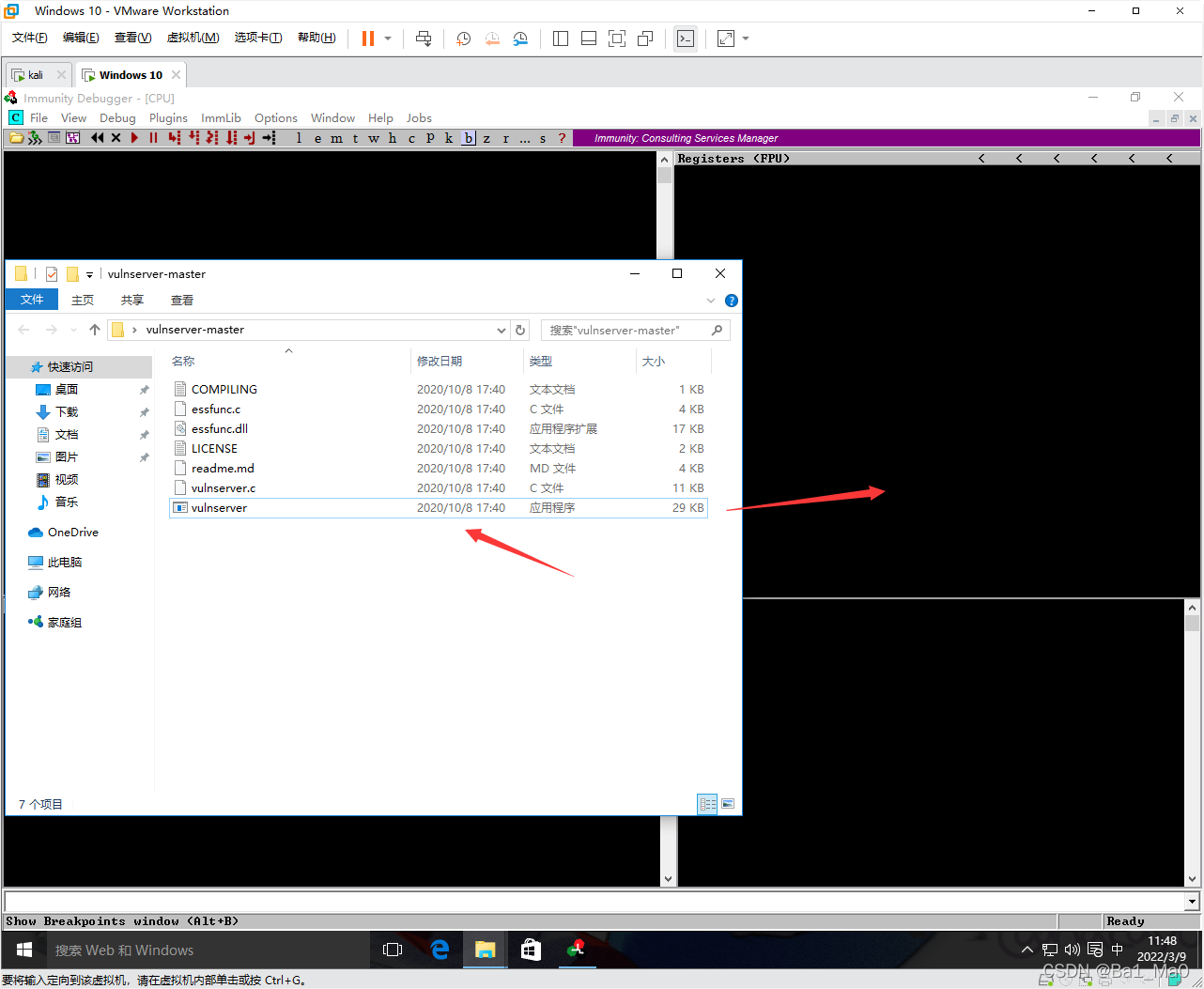 回到windows,我们关闭掉immunity debugger,然后双击直接运行Vulnserver
