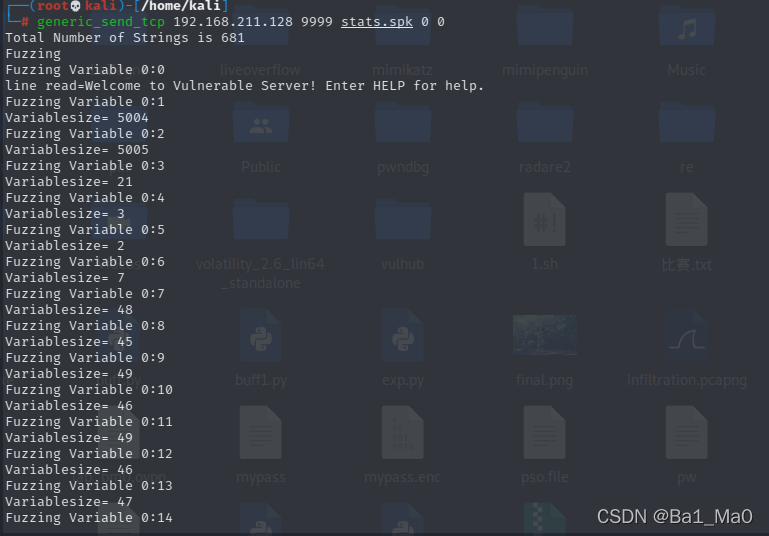 成功运行Vulnserver后,我们回到kali里,因为我们在程序的第一行声明文件是用python运行的,所以我们可以直接运行文件