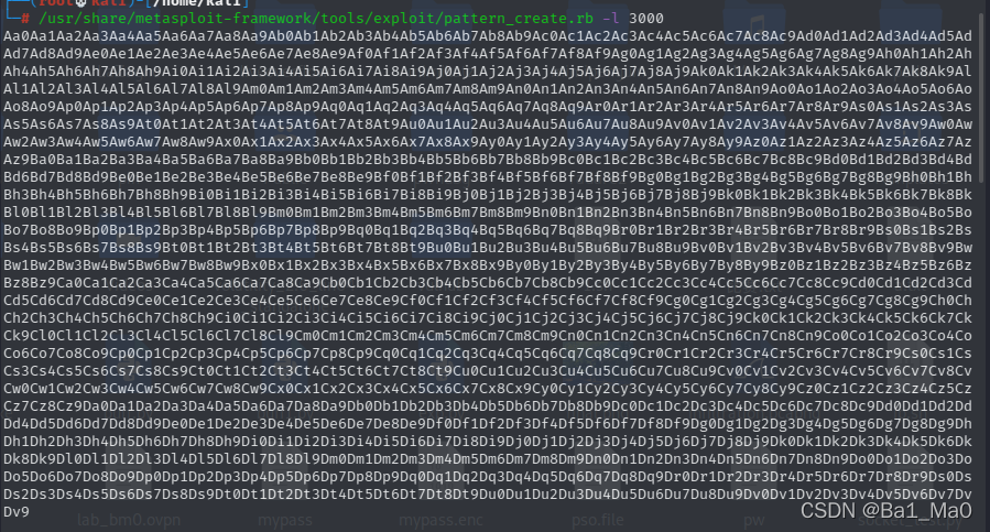 我们回到kali,查找386F4337这个字符在3000个字符里的第几个,我们还是要用metasploit里的一个工具,他能找到386F4337这个字符在3000个字符里的第几个